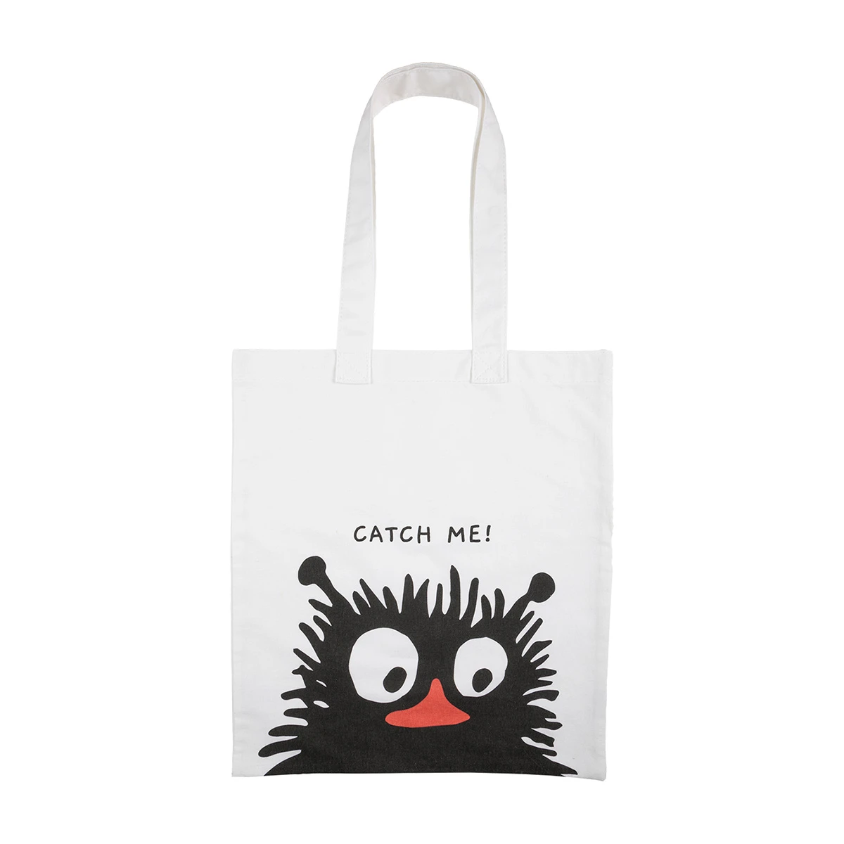 Kassens framsida har ett tryck med Stinky och orden Catch Me! Vit baksida. De stadiga handtagen kan bäras i handen eller över axeln. Perfekt för dig som vill minska på användningen av plastpåsar, eller tröttnat på ett berg av papperskassar.