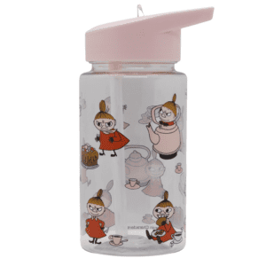 Vattenflaska tillverkad i tålig BPA-fri plast med underbart motiv från Mumin. Flaskan är smidig att dricka ur och pipen är lätt att både stänga och öppna. Det inbyggda sugröret minskar spill och upptill finns ett praktiskt bärhandtag.