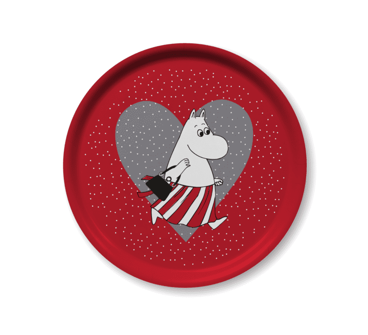 Muminbricka, Rund Julhjärtan, Röd. Gillar man Mumin måste man så klart ha en bricka med Mumin på! Underbart julmotiv med Muminmamman. Röd bricka med grått hjärta.