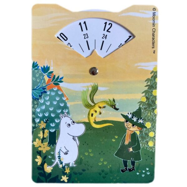 Söt P-skiva med Mumintrollet och draken – perfekt för bilen där tidsinställd och avgiftsfri parkering är möjligt. Praktisk och rolig parkeringstavla i stadig papp.