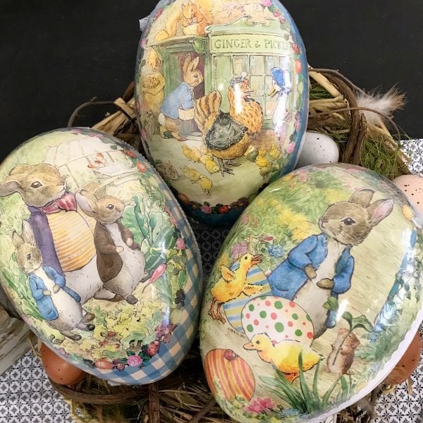 Supersöta påskägg i papp med superfina motiv av Beatrix Potter. Det är klassiska motiv av Peter Rabbit och hans vänner som aldrig går ur tiden. Det här är påskägg med motiv som de flesta känner igen och gillar. Klassiska påskägg med plats för precis lagom mycket godis eller en present. De är ljuvligt söta!
