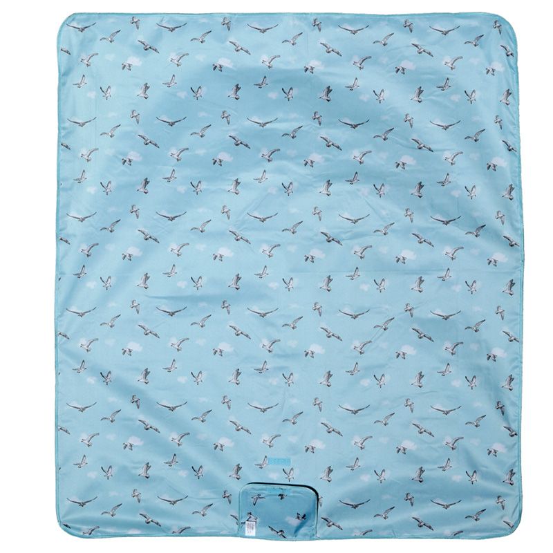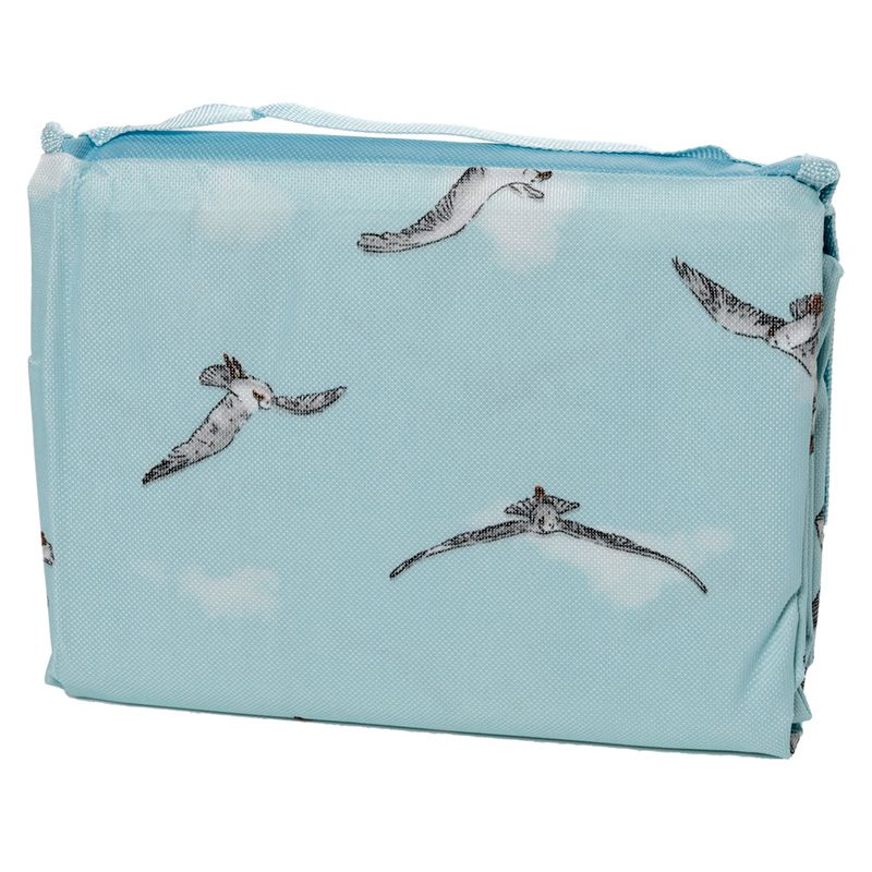 Praktiskt vikbar picknickfilt, fiskmås. Njut av härliga picknickar i gräset, på stranden eller en klippa, och slå dig ner på denna fina picknickfilt. Ljusblå botten med massor av fiskmåsar. En picknickfilt med riktig sommarkänsla! Plastad baksida som är lätt att torka av och håller dig torr om det är fuktigt i marken. Vikbar picknickmatta med bärhandtag för enkel förvaring och transport. Tillverkad Oxfordduk, som är en både vattenavvisande och slitstarkt.