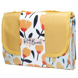 Praktiskt vikbar picknickfilt, Smörblomma. Njut av härliga picknickar i gräset, på stranden eller en klippa, och slå dig ner på denna fina picknickfilt. Ljus botten med somriga smörblommor i en härlig färg. Tillverkad av återvunnet material och är 100% vattentät, vilket håller dig torr när du sitter ute. Vikbar picknickmatta med bärhandtag för enkel förvaring och transport.