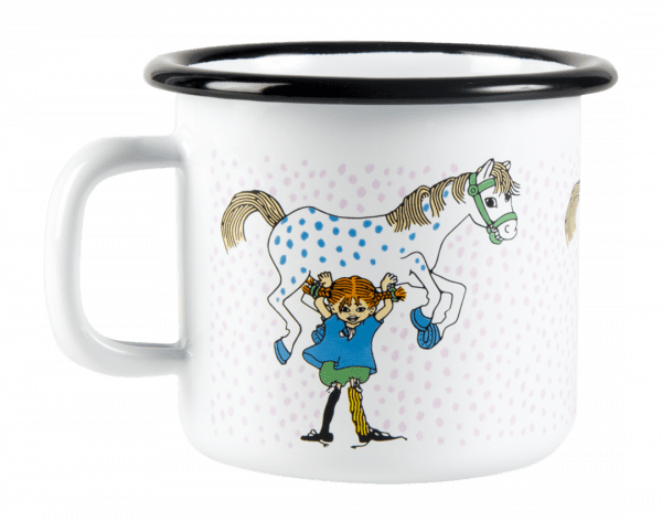 Lägstapris senaste 30 dagarna:Pippi Emaljmugg – Pippi och Lilla Gubben, 2,5 dl. Jättefin emaljmugg från Muurla, med ett klassiskt Pippimotiv där hon starkast i världen lyfter sin häst Lilla Gubben på raka armar. Illustration av Ingrid Vang Nyman.