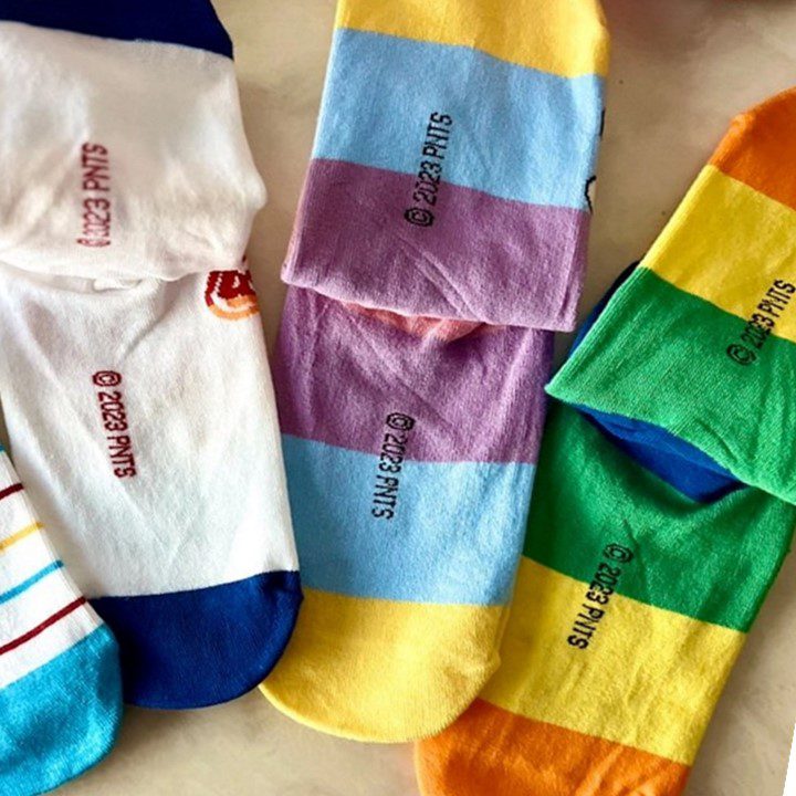Härligt färgglada randiga ankelstrumpor med Snobben och ett hjärta. Bekväma stumpor med mycket stretch som kommer i en storlek och passar fötter i storleken 36-40. Det här är strumpor att bli glad av, dessutom är det lättsorterade efter tvätt!