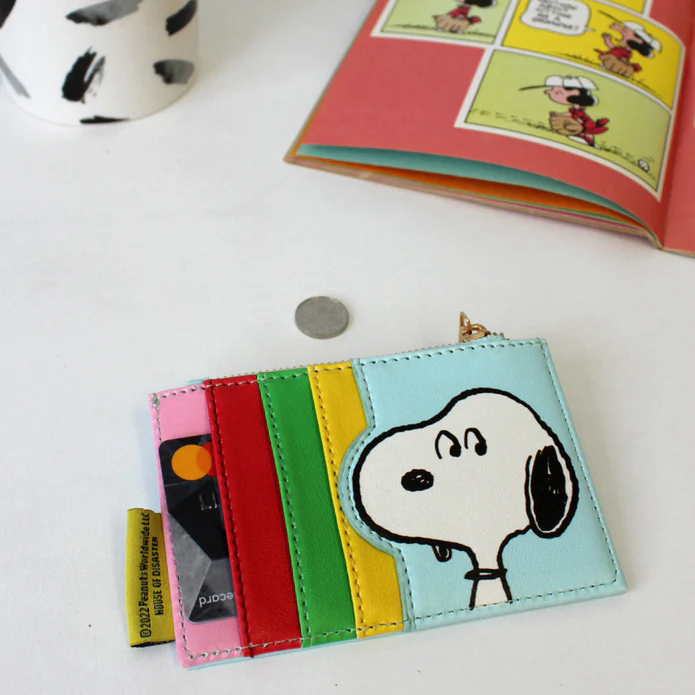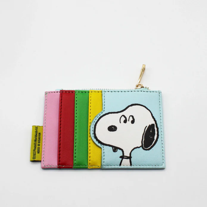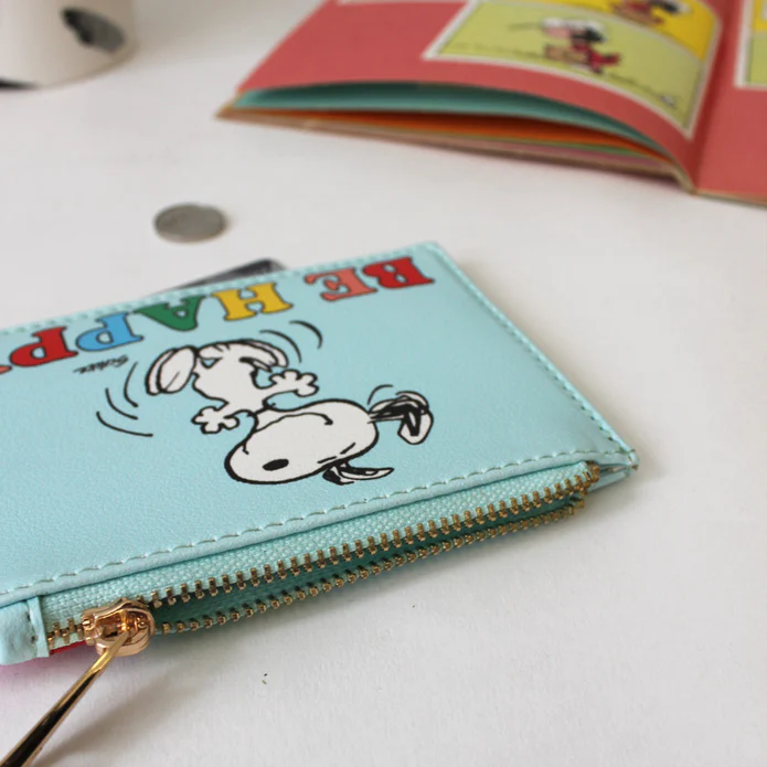 Smidig plånbok i fint motiv. Framsida med Snobben som dansar över order ”Be Happy”. Baksida med fyra fickor, i regnbågens färger och plats för kort, samt fack med dragkedja och plats för sedlar och mynt.