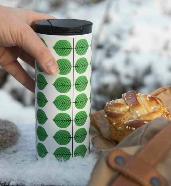 Varmt och stiligt – klassiskt mönstrad termosmugg med Stig Lindbergs mönster Berså. Denna eleganta termosmugg är perfekt för dig som vill ha din varma favoritdryck med dig då du är på språng. Muggen rymmer 0,35 L.