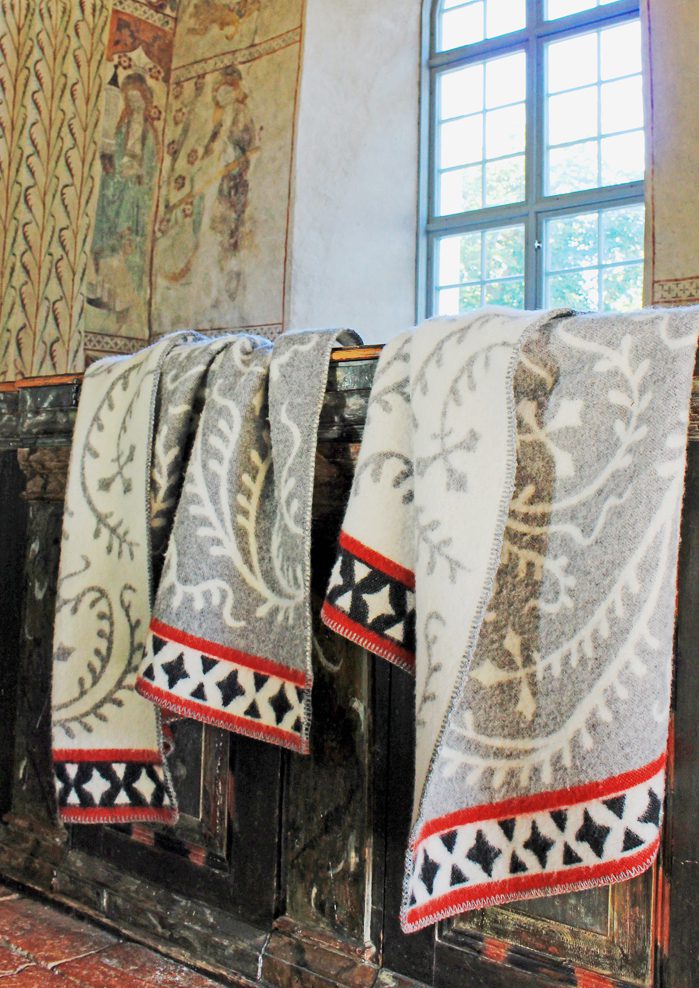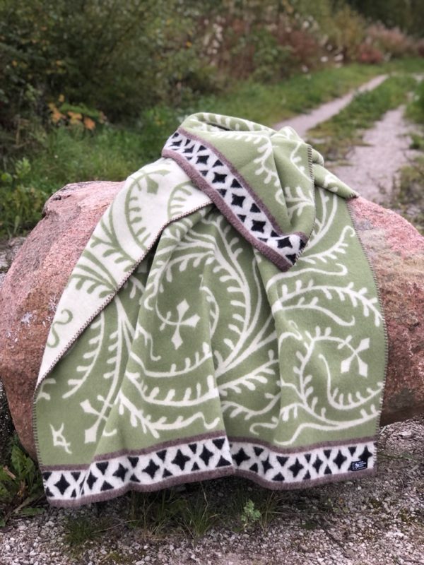 Mönstret till vår Ullfilt Albertus är inspirerat Albertus Pictors medeltida kyrkomålningar med slingor av akantusblad och bårder. Vävd av 100 % ekologisk ull. Upplev känslan av att svepa in dig i en riktig ullfilt som både värmer och andas!