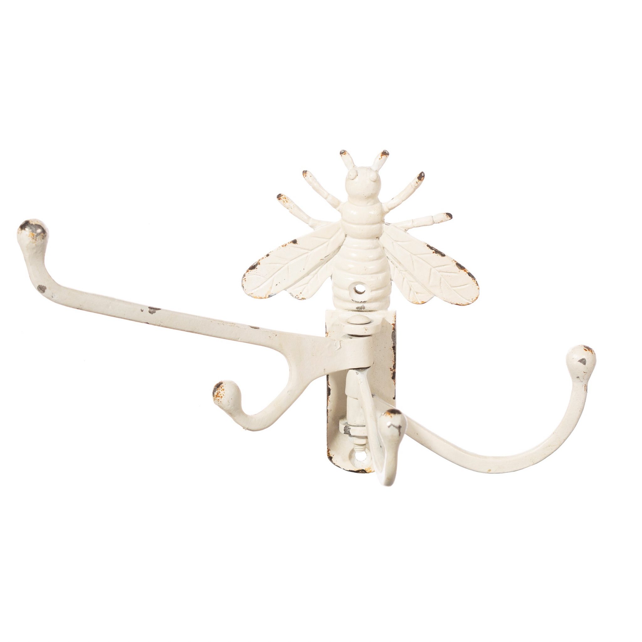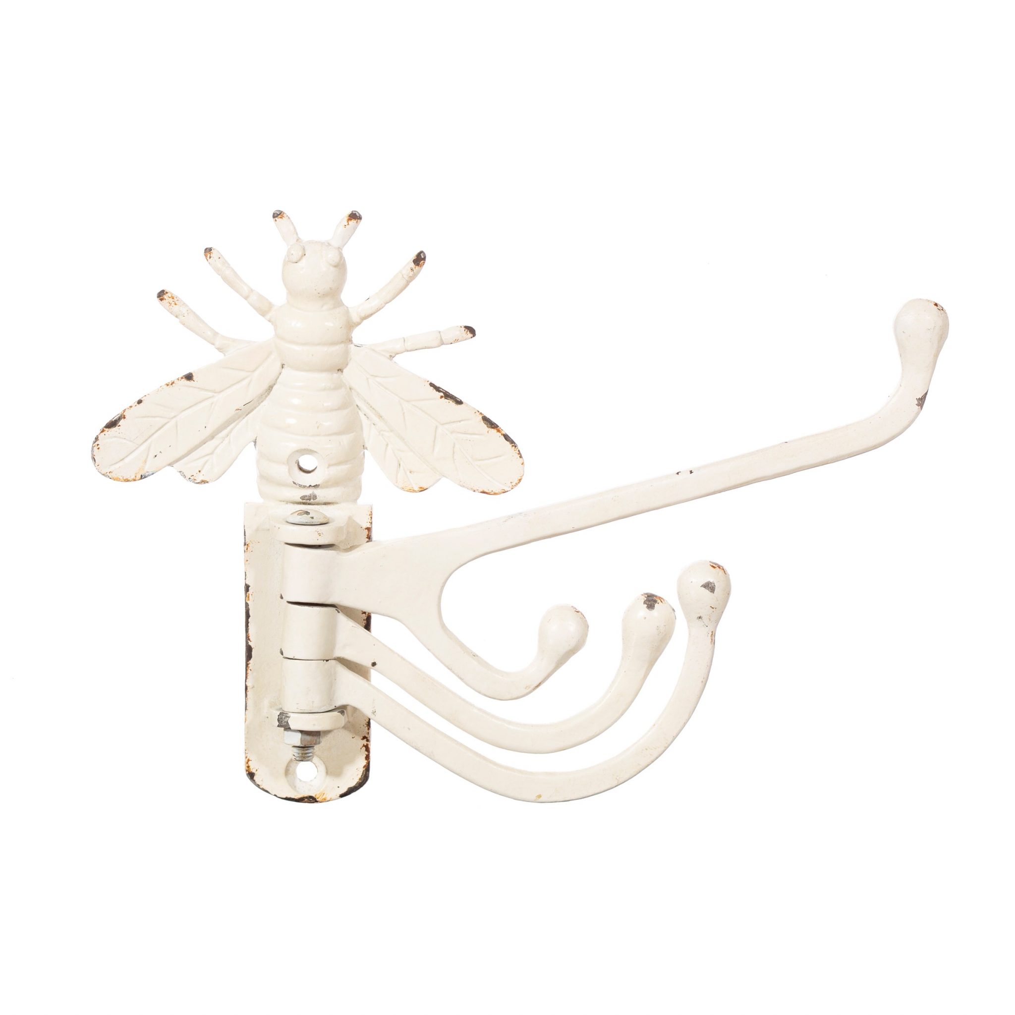 Antikvit väggkrok bi i chabby chic stil, men tre rörliga hängare. Snygg och praktisk! Passar i såväl i barnrum som hall, eller var helst du behöver en praktisk och fin inredningsdetalj. Vit krok med en sliten finish.