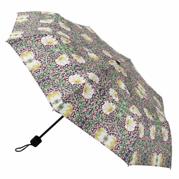 Praktisk och snyggt paraply i William Morris klassiska mönster Pimpernel. Ett paraply som piggar upp de gråaste av dagar. Uppfällt mäter paraplyet ca 100 cm i diameter, och ihopfällt är det ca 23 cm långt och går ned i handväskan!