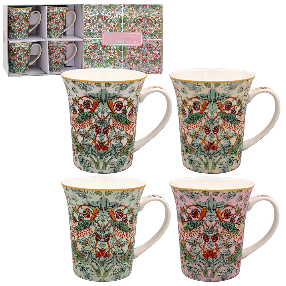Vackra muggar i 4-pack i olika nyanser, med William Morris klassiska mönster Strawberry Thief. Muggarna ligger förpackade i matchande presentkartong. Muggarna rymmer ca 3 dl. Fin present som tål både maskindisk och mikrovågsugn – Lustre-versionen gör att både muggarna och förpackningen är extra blanka med fin lyster.